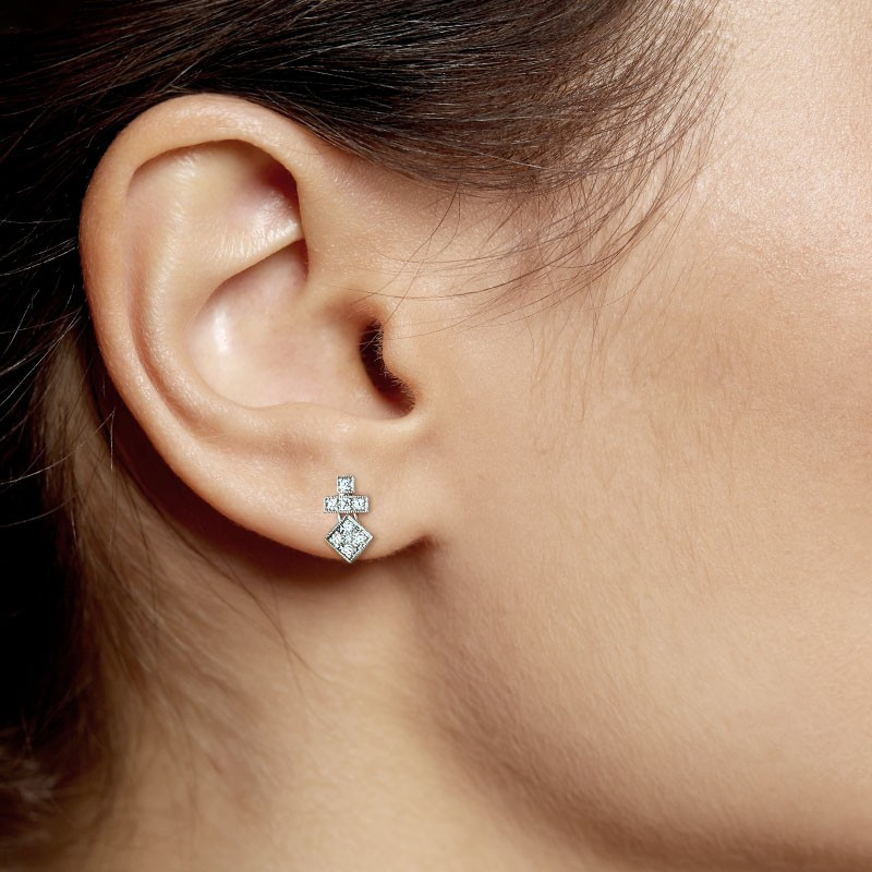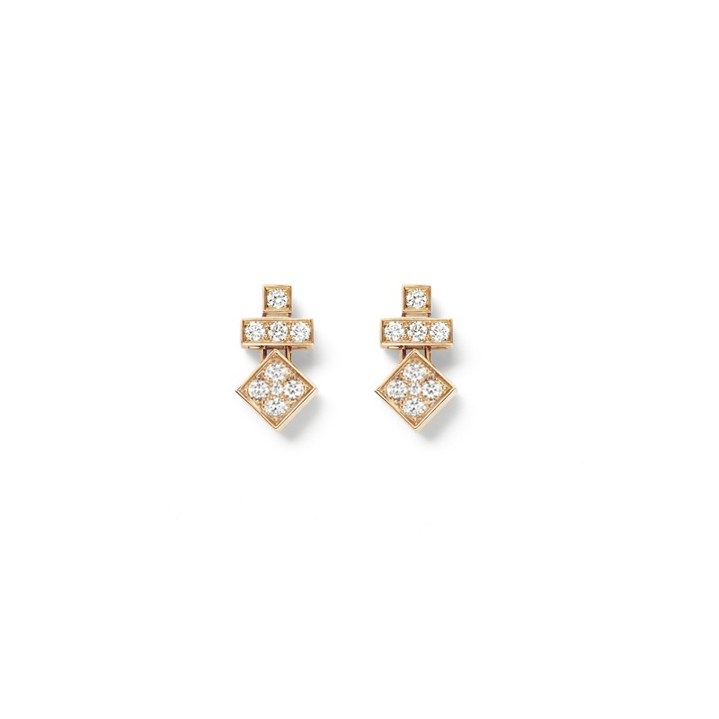 Ces ravissantes boucles d'oreilles, inspirées de la collection Art déco Stairs, sont, chacune, serties de 8 diamants dont la brillance met en valeur la pureté des lignes géométriques, apportant ainsi, à chaque tenue, une touche d'élégance discrète et délicate.