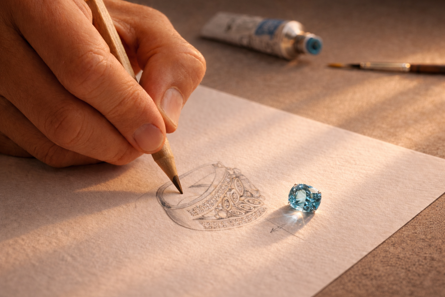 Si aucun modèle existant ne vous ressemble tout à fait, la création sur mesure s'impose comme une évidence. Dans votre joaillerie parisienne, nous vous accompagnons de l'idée au bijou : choix des matériaux, du motif, des pierres, du message gravé. La consultation initiale est gratuite et sans engagement.