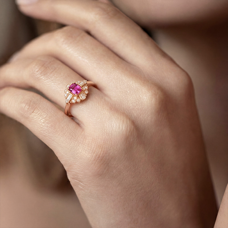 Bague Charleston Baker mini saphir rose