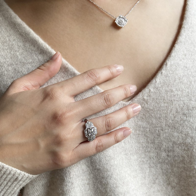 La bague Charleston Vintage est un hommage stylistique aux bandeaux des flappers des années folles. Leur ouverture au monde de la mode a porté les générations suivantes à une exploration de style et de liberté. Avec son dessin structuré qui laisse deviner une personnalité vibrante et passionnée, la Charleston Vintage est un bijou intemporel. Interprétation moderne des motifs des années 20, ornementale, classique et moderne, cette bague est une pièce de caractère.