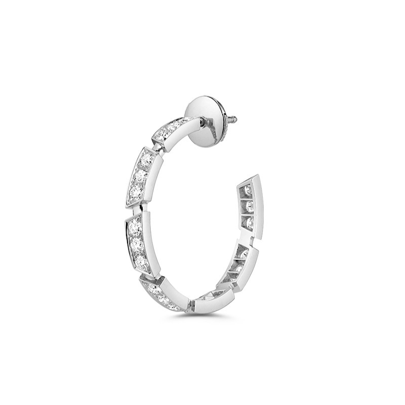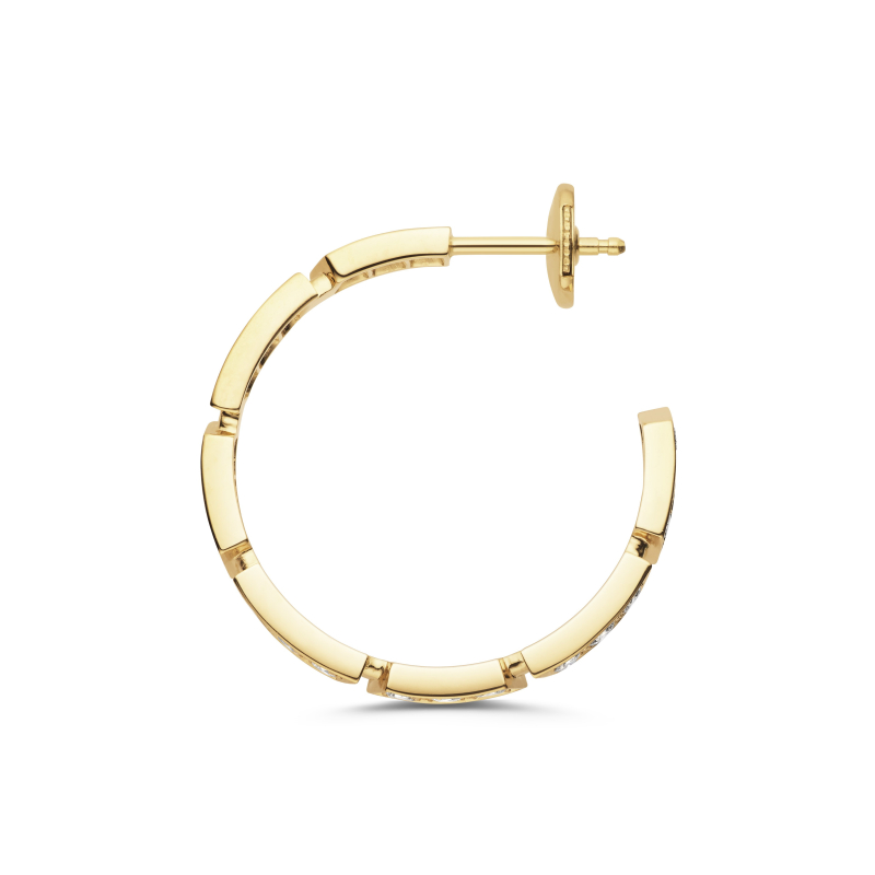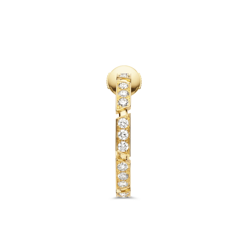 Le beau motif en trapèze propre à la collection Charleston est ici décliné sous forme de créoles. Ces boucles d’oreilles sont ainsi revisitées dans un modèle tout en légèreté. L’éclat pétillant des diamants est mis en valeur par la découpe si particulière, créant un jeu de lumière très Art Déco, tandis que l’alternance des motifs géométriques donne à ces boucles d’oreilles leur allure dansante.