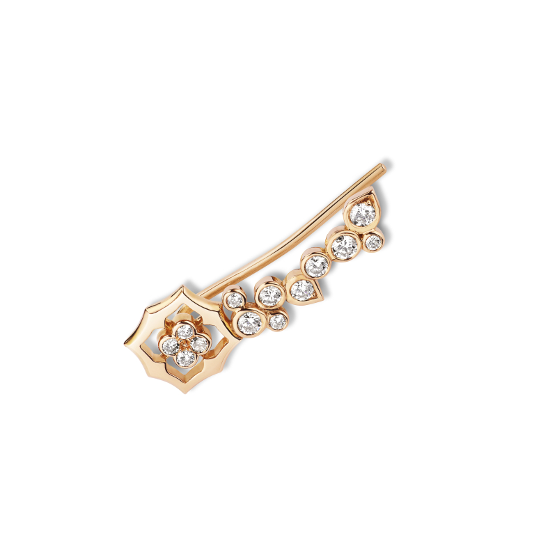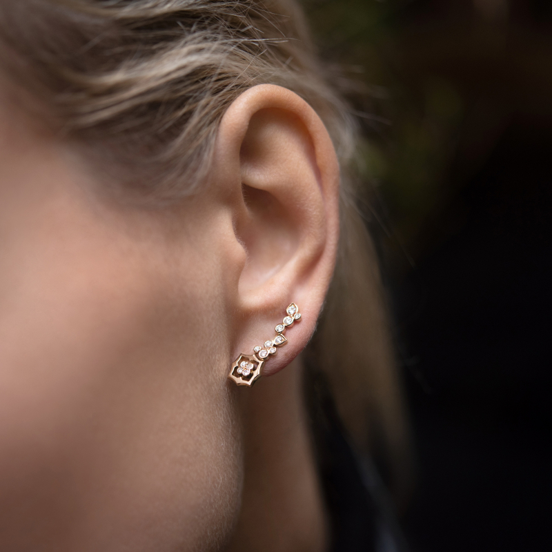 Une belle étoile filante, habillant la courbe de votre lobe. Ce grimpeur est un ajout élégant à la collection Etoile. Ce modèle s'enfile comme une boucle d'oreille classique, et se sécurise derrière l'oreille grâce à une fine barre que l’on peut resserrer soi-même.