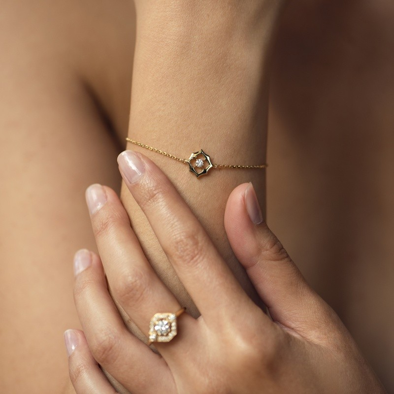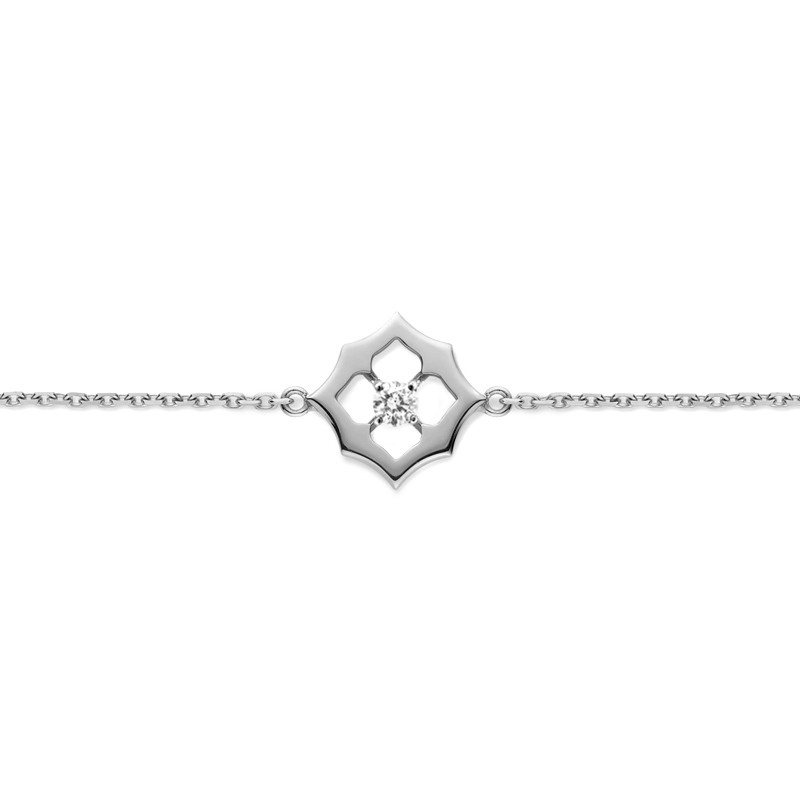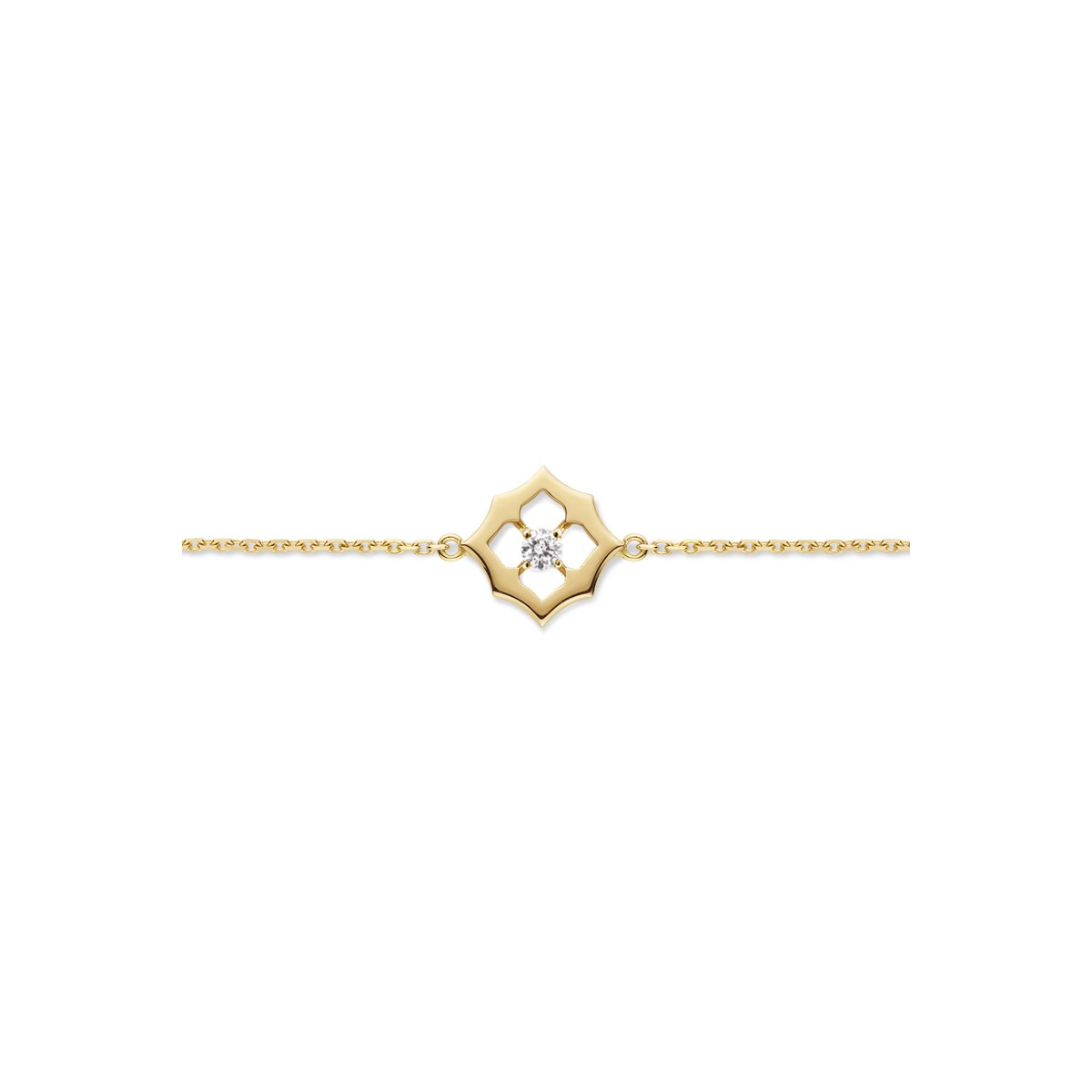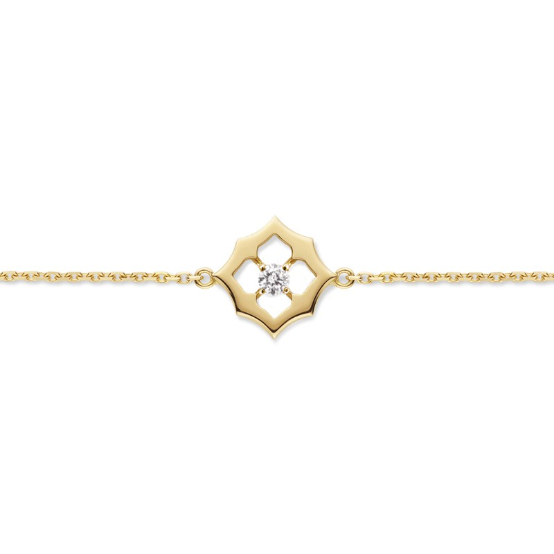 Pièce élégante, discrète et intemporelle, ce bracelet à la simplicité exemplaire tire son raffinement de l'alliance maîtrisée entre la brillance étincelante du diamant central et l'éclat satiné du l'or.