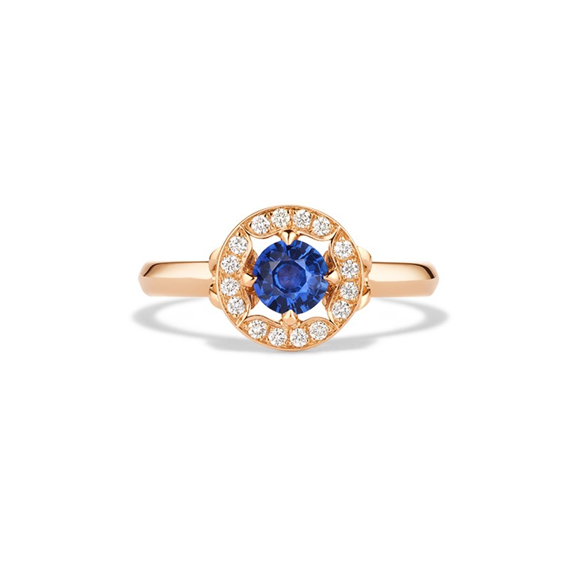 Une interprétation de notre solitaire Étoile, avec une touche d'originalité en plus. Dans cette version plus minimaliste du modèle Étoile, les saphirs sous la galaxie de diamants de la bague offrent une dimension décalée et rebelle. Un éclat de couleur et une pointe de géométrie en plus !