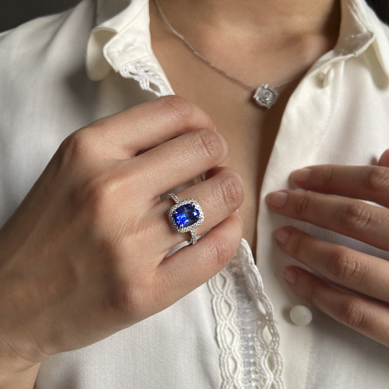Un modèle intemporel mariant à merveille la brillance des diamants et l'intensité du saphir.