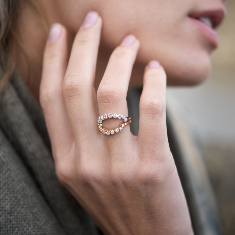 Cette alliance a été imaginée pour accompagner la superbe bague Charleston Bird. Si la belle cascade de diamants agencés en parfaite symétrie dans ce modèle s’accorde à merveille aux lignes élégantes de sa splendide compagne, l’alliance bird se suffit également à elle-même. Possédant son caractère propre, elle se démarque par l’arc original et élégant formé par son assemblage de sertis clos.