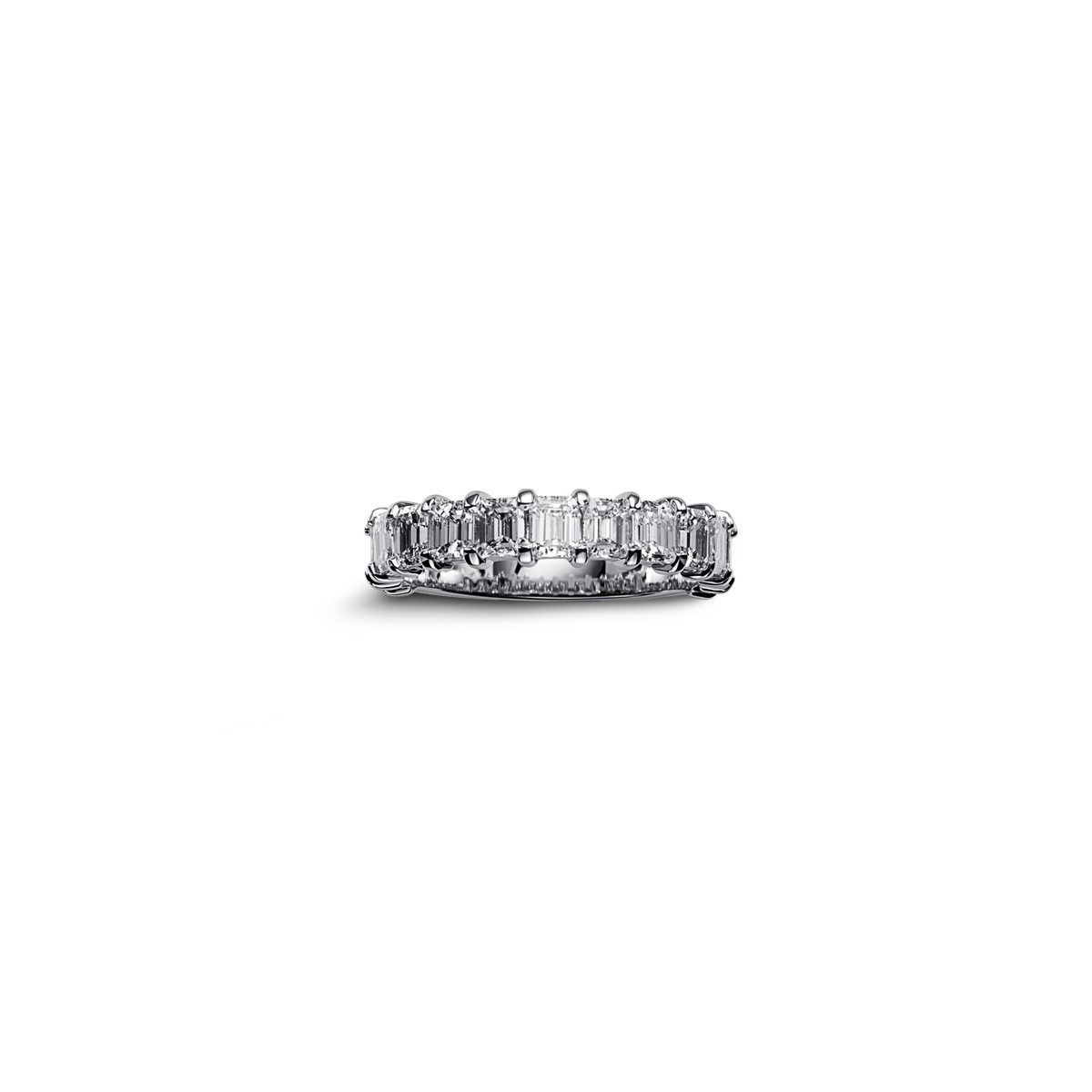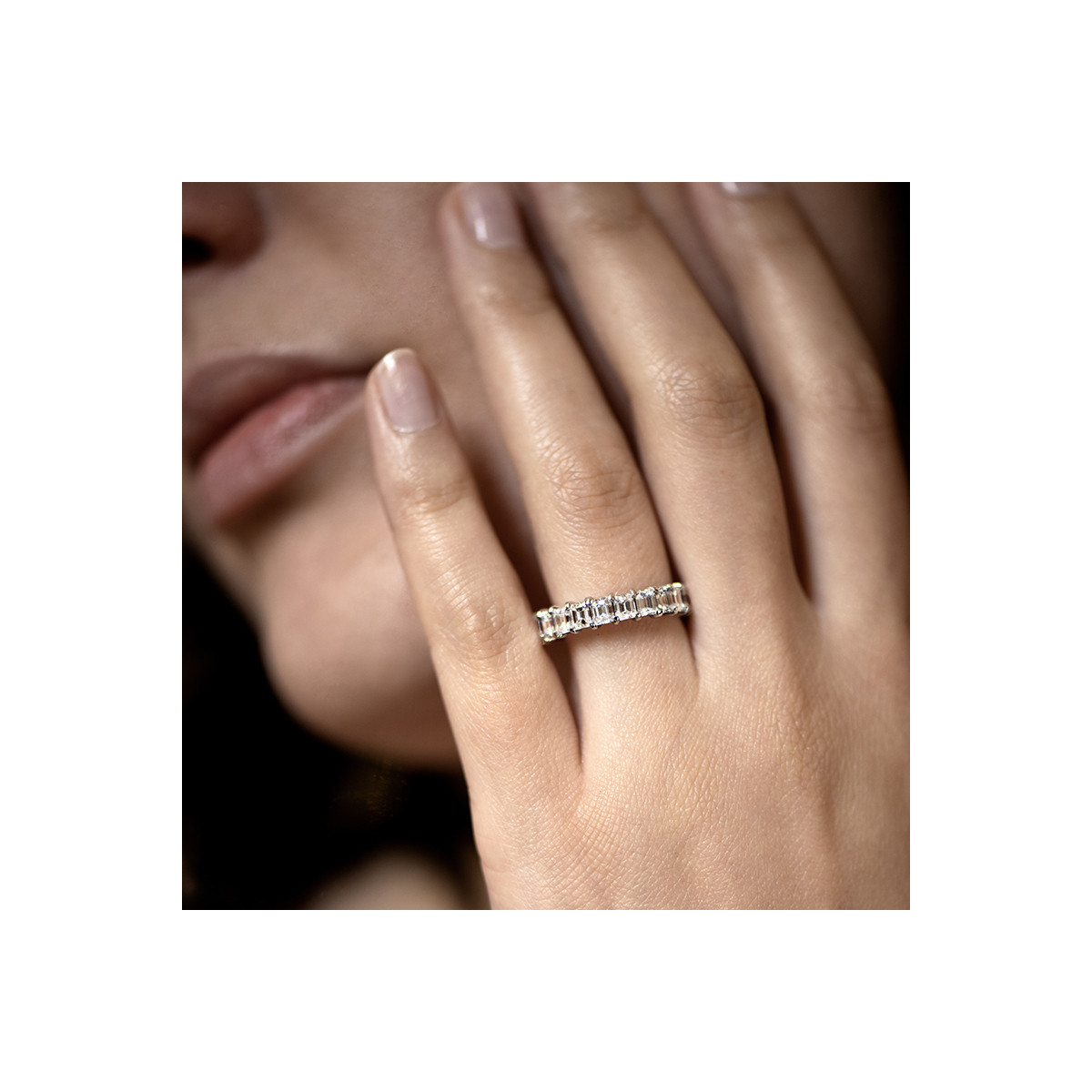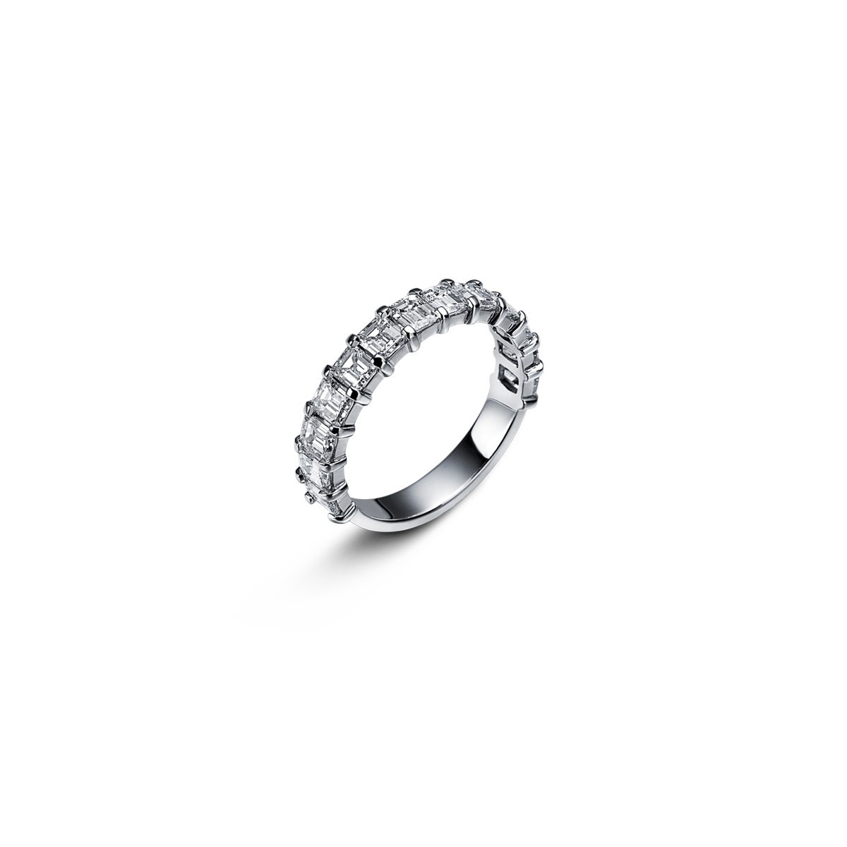 Une alliance originale et incontournable grâce à l'emploi inédit de diamants taille émeraude dont l'éclat, si différent de celui des diamants taille brillant, n'en est pas moins envoûtant. Cette bague offre ainsi à sa détentrice un charme éclatant.
