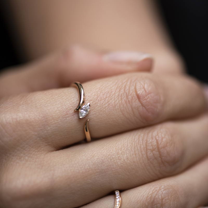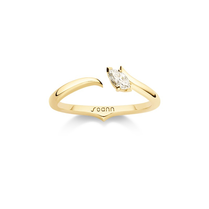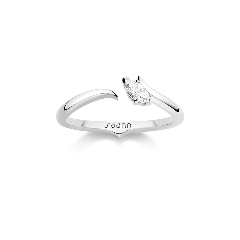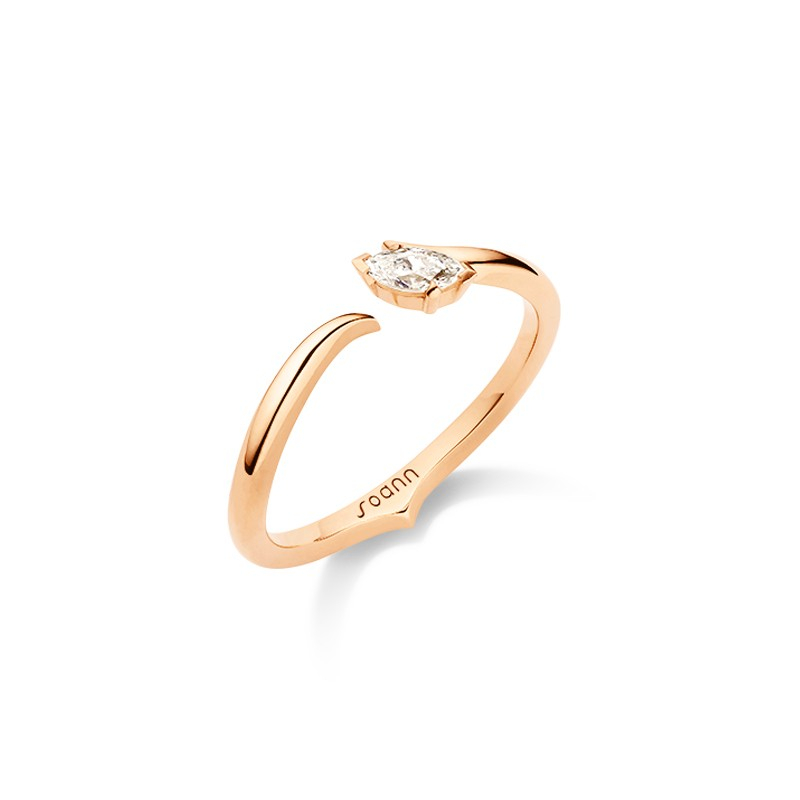 L’alliance Méandre Naïade suit les courbes de la bague du même nom. Empreinte de légèreté, c’est l’alliance ouverte parfaite à associer à beaucoup de différents solitaires. Associée avec un diamant navette, la Méandre Naïade Navette offre une originalité unique.