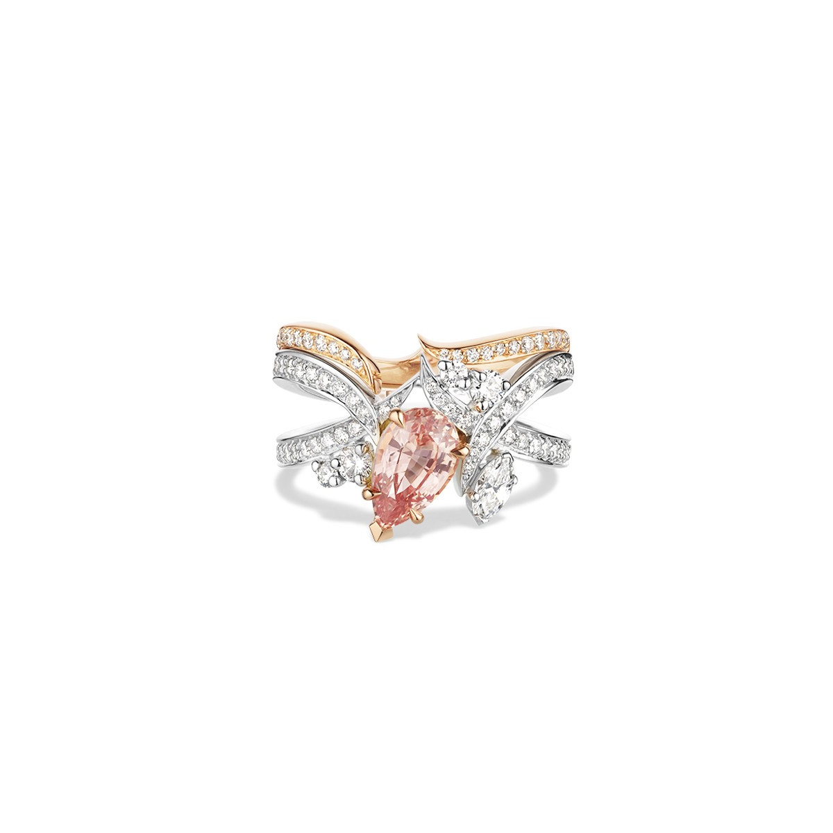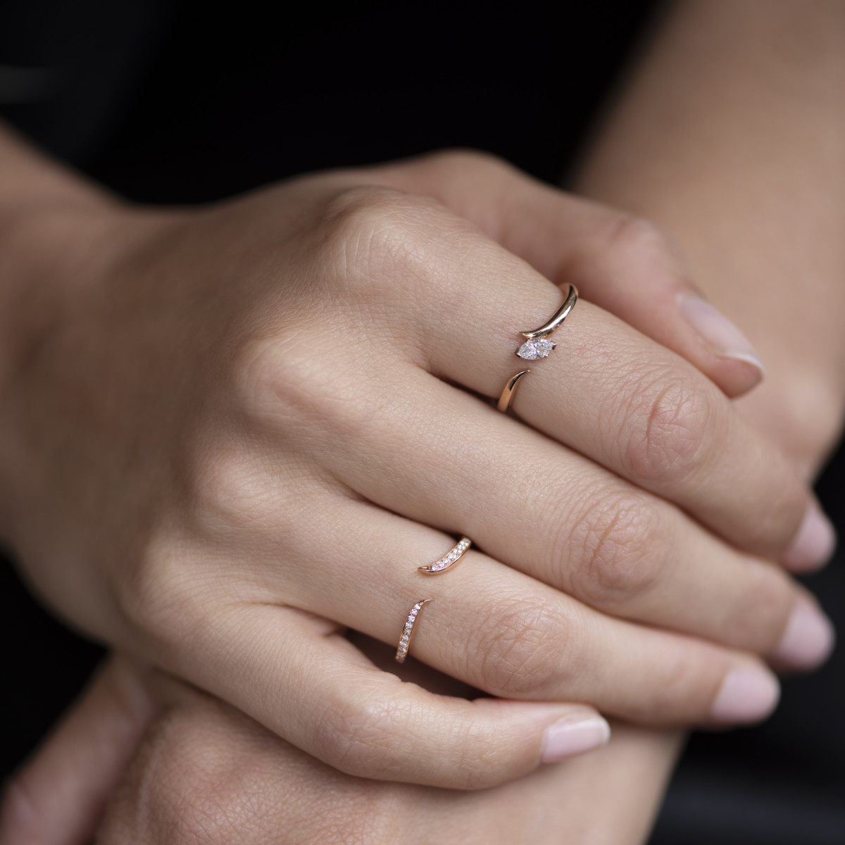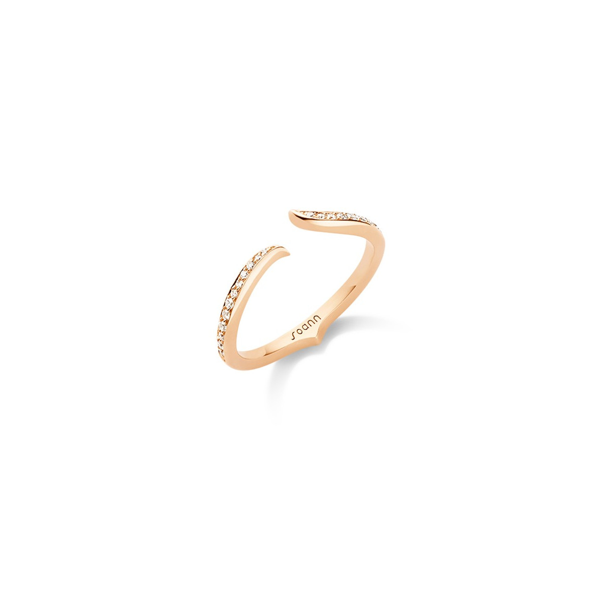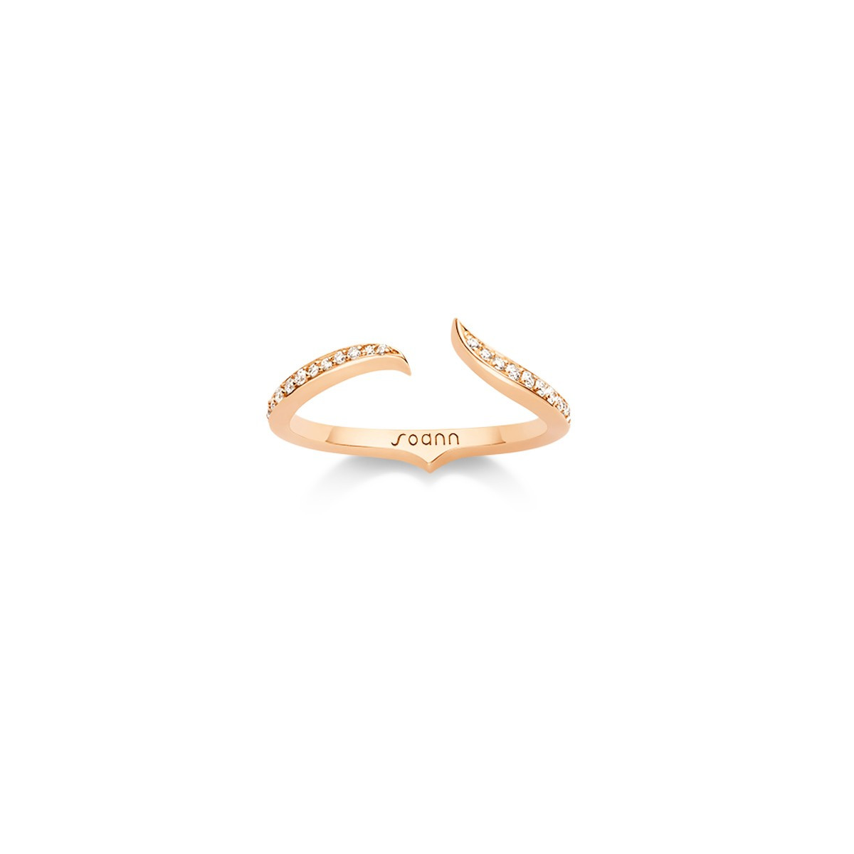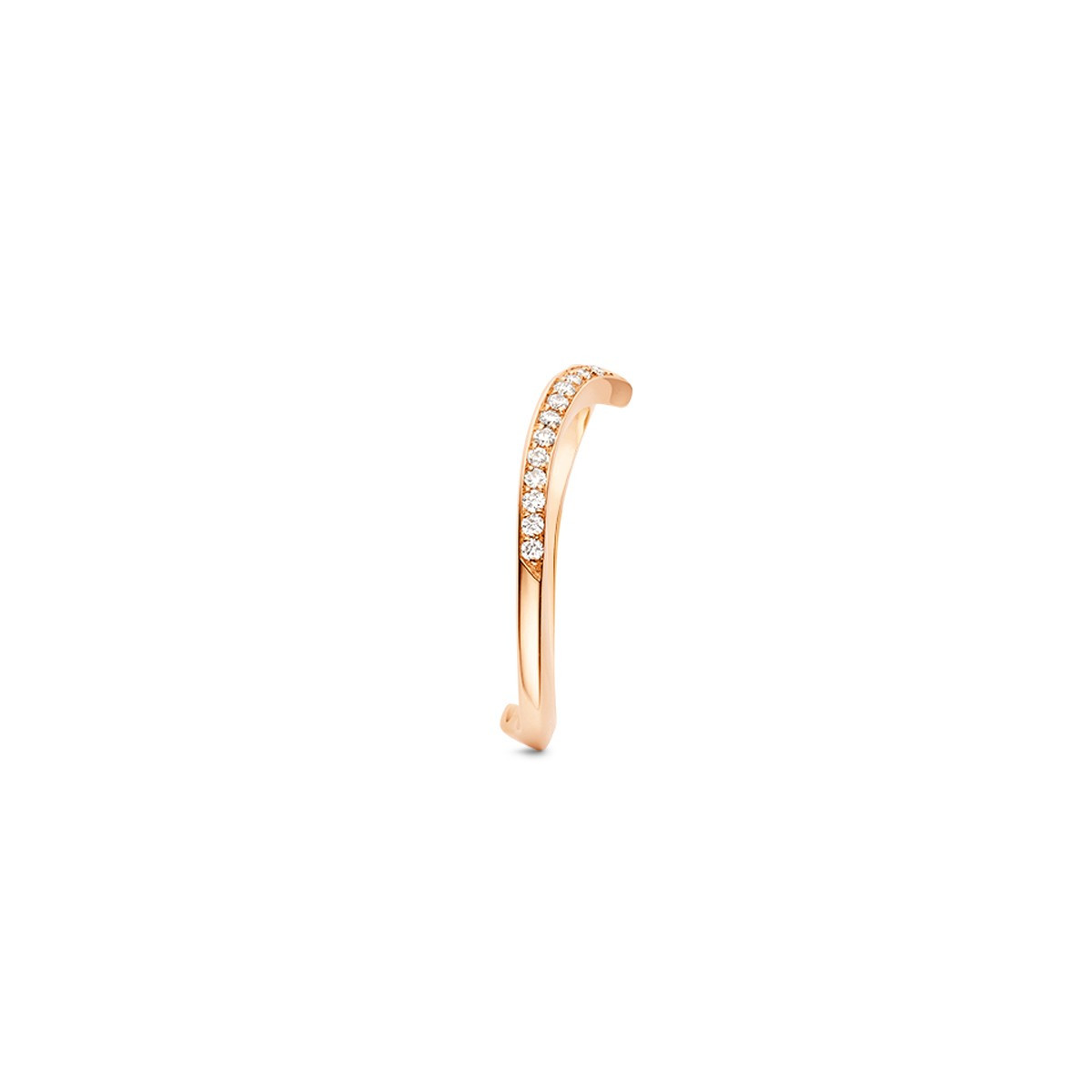 L’alliance Méandre Naïade suit les courbes de la bague du même nom. Empreinte de légèreté, c’est l’alliance ouverte parfaite à associer à beaucoup de différents solitaires. Avec un pavage de diamant, la Méandre Naïade pétille.