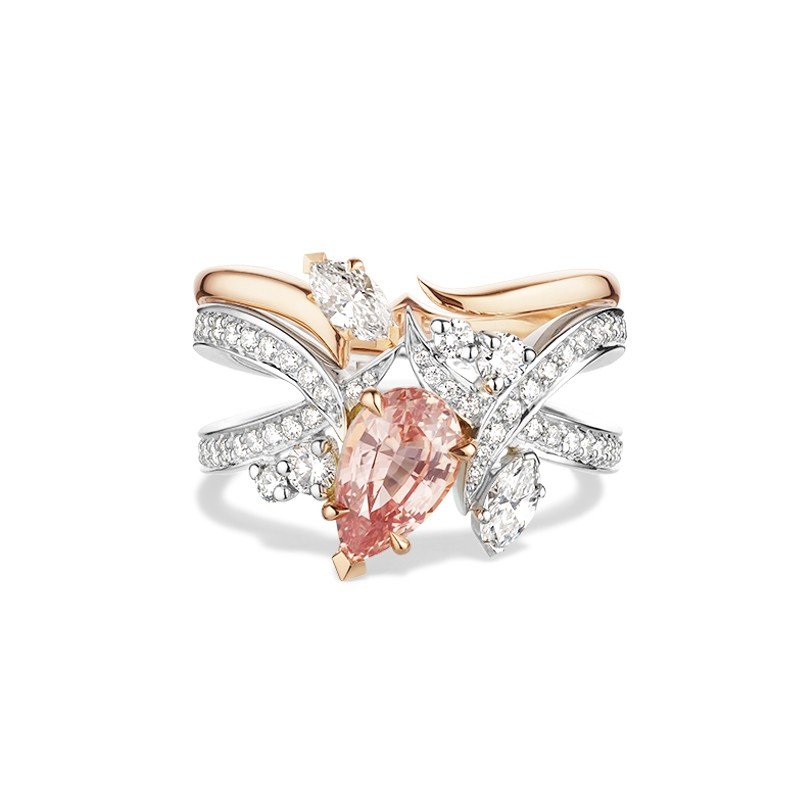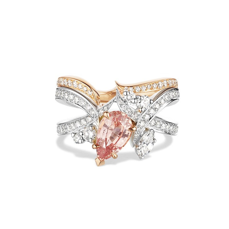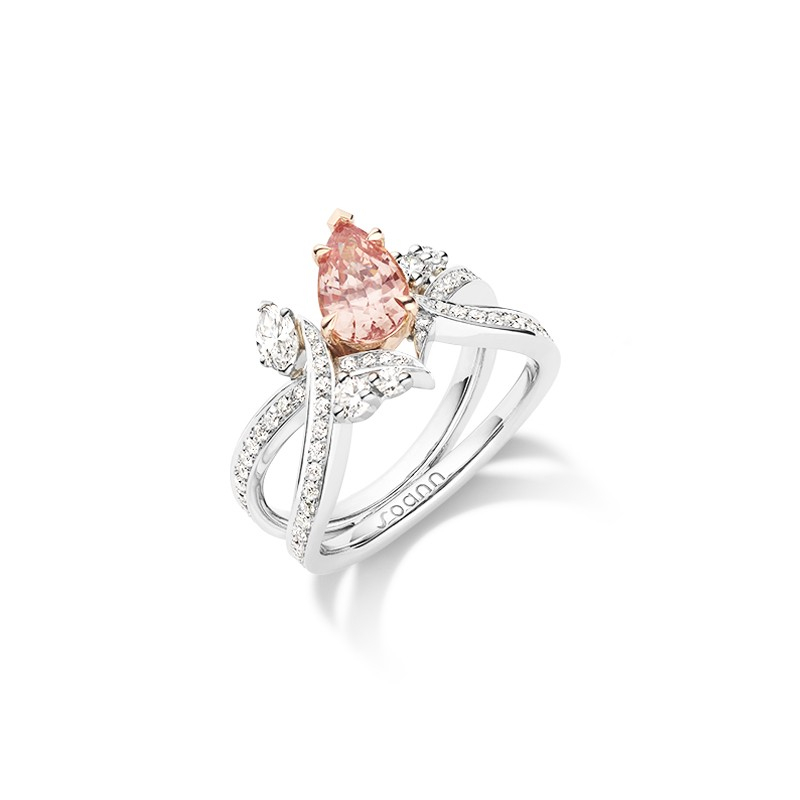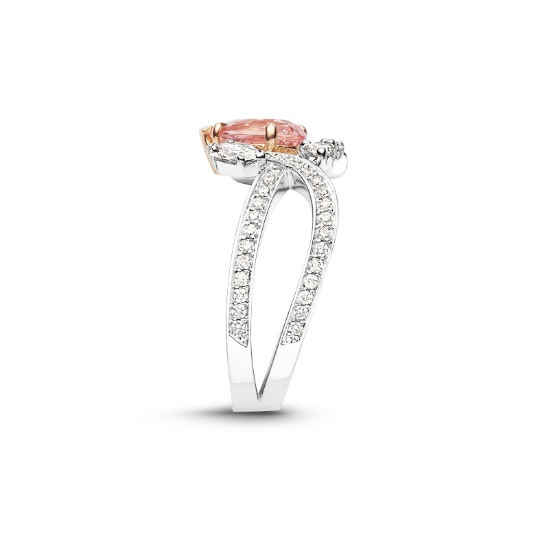 Le charme de cette bague réside dans ses courbes élancées et dynamiques. La bague Méandre Naïade met en lumière un magnifique saphir Padparascha sublimé par l’éclat des diamants qui l’entourent. Toute l’élégance du design signé Soann dans un modèle qui lui confère un caractère unique.