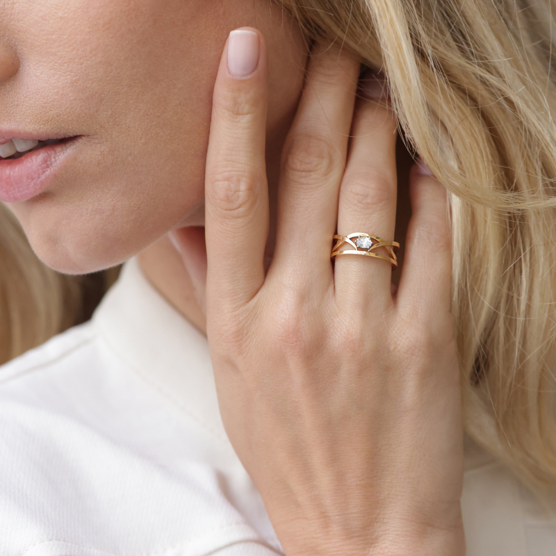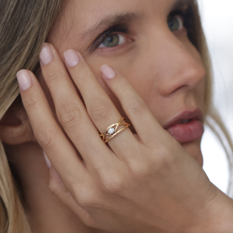 Simple et tout en finesse, facile à porter au quotidien cette nouvelle variation de la collection méandre présente un design pur et délicat. Un chaton 6 griffes permet de mettre en avant le diamant pour le magnifier.