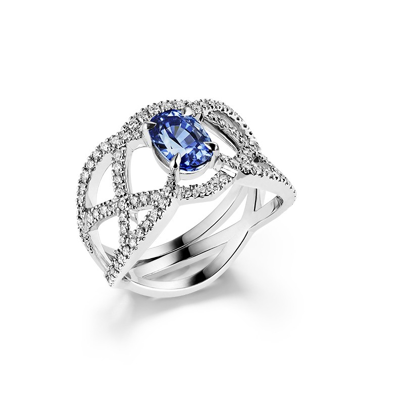 Pierre centrale : Saphir de Ceylan ovale 1 à 2.50 carats