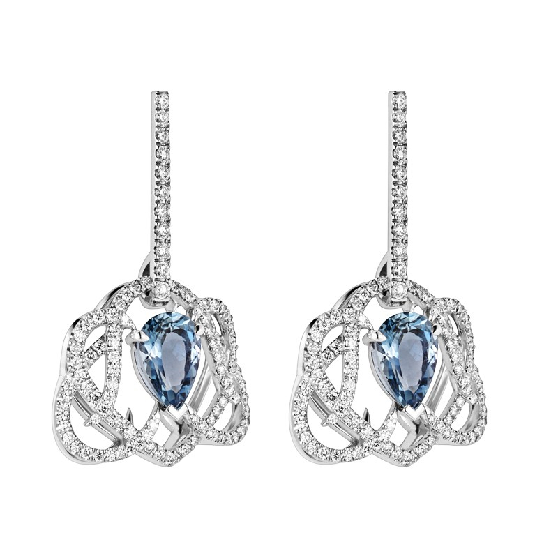 Pour cette paire de boucles d’oreilles scintillantes, l'élégance maîtrisée des courbes de la collection Méandre souligne à la perfection la pierre taillée en poire en son centre. Entre la douceur du motif, la sophistication du design et la somptueuse couleur des aigues-marines, les boucles d’oreilles Méandre prouvent leur versatilité et originalité.