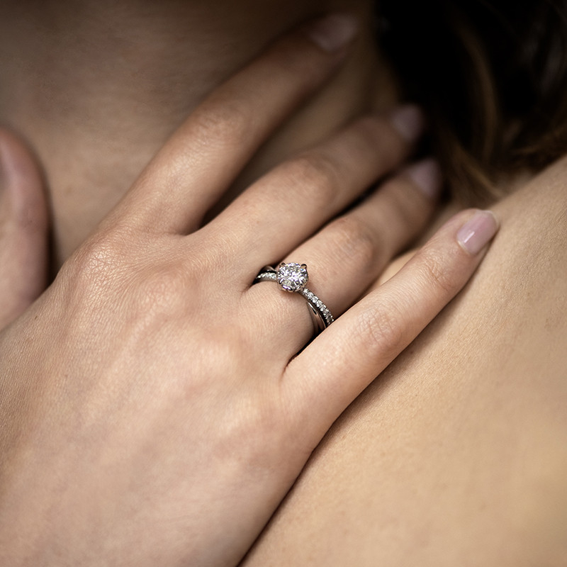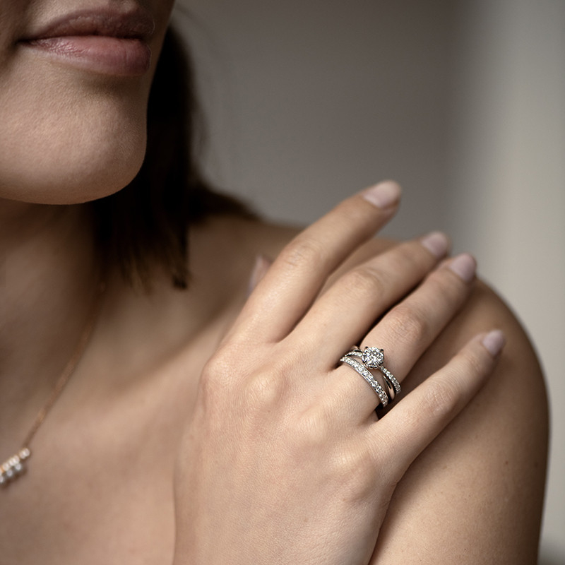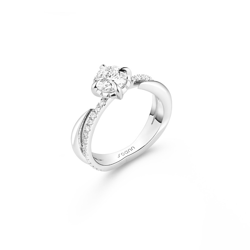 La collection Méandre , première création emblématique de la maison Soann, s’enrichit avec ce solitaire d’exception, fusion parfaite entre tradition et modernité. Ce modèle réinvente la douceur caractéristique de cette collection. Son design audacieux se distingue par un corps de bague entrelacé tout en harmonie. En son cœur, un chaton griffe serti en pointe élève le diamant central, qui semble flotter en lévitation. magnifiant son éclat sous tous les angles.