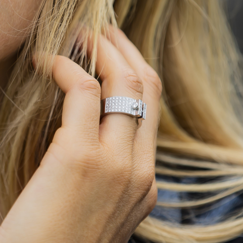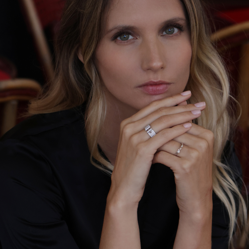 La collection Variation offre des lignes fortes et inimitables. La bague Variation H est une itération mixte de cette unique famille. Un anneau puissant et éternel s’ouvre afin de créer une légèreté unique. Un clou en lévitation uni les deux côtés de ce cercle et le sertissage inversé d’un diamant à son extrémité est l’ultime détail de cette collection signature.