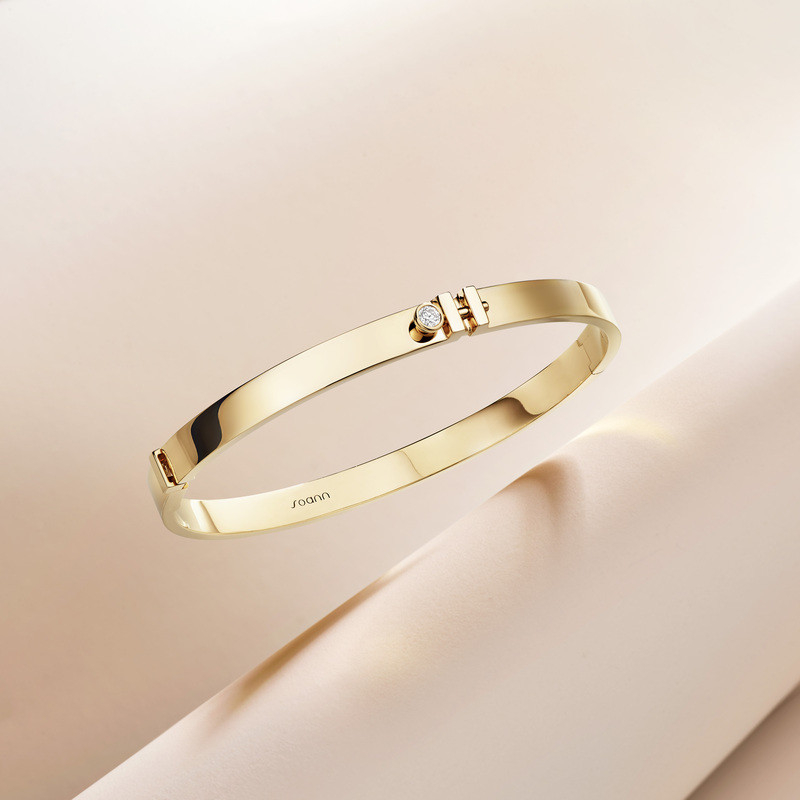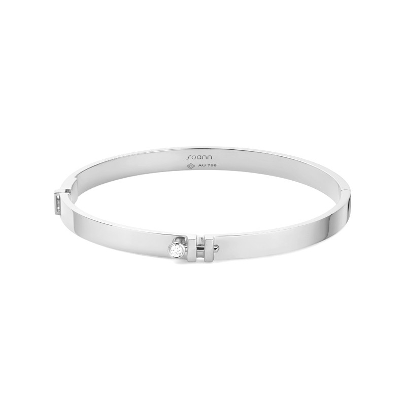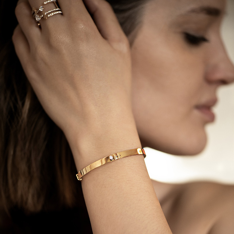 Bracelet Variation, ce bracelet jonc ruban par son design pur et stylisé évoque la force et l’élégance, avec ses courbes précises et parfaites il sera à la fois robuste et délicat à votre poignet. Simplicité et raffinement sont au rendez-vous de cette création que son emblématique diamant vient affirmer.