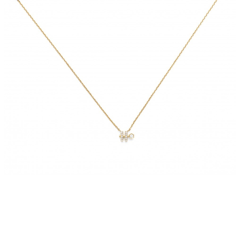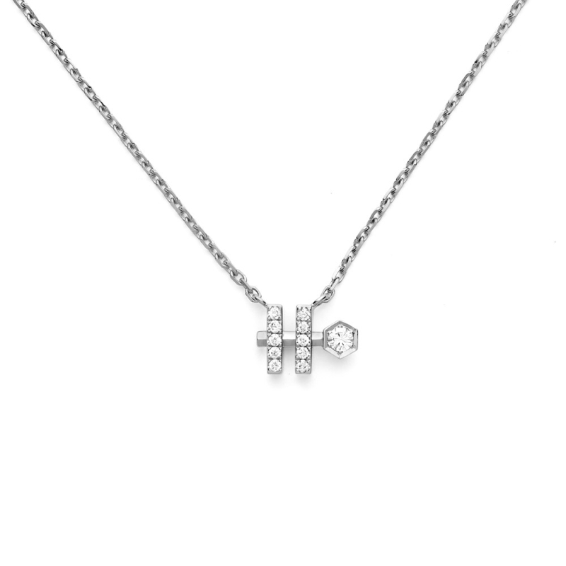 Modèle sobre et chic, ce collier de la collection Variation orné d’un pavé de diamants qui reflète à merveille un univers où l'élégance découle de la perfection des lignes épurées. Le motif de cette collection joue sur la dissymétrie et un design affirmé et contemporain. Le clou hexagonal, structuré et graphique, ajoute la touche finale à ce bijou de l’univers Soann.
